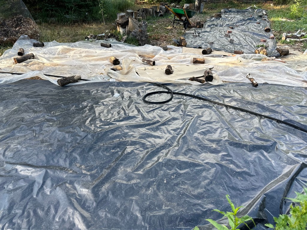We got cardboard from Craigslist, Nextdoor, and Freecycle. For arborist mulch, we have done Chipdrop and hooked up with local arborists and stump grinders for convenient dumps, and hauled mulch ourselves from the city mulch pile. The supplies are essentially free, but it can involve a little more labor and searching than solarization.